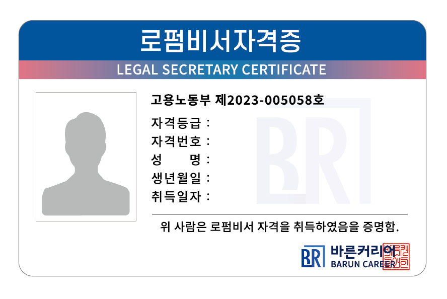 - 로펌비서 자격증은 주무부처가 고용노동부이며 국내 최초의 로펌비서 민간자격증입니다.