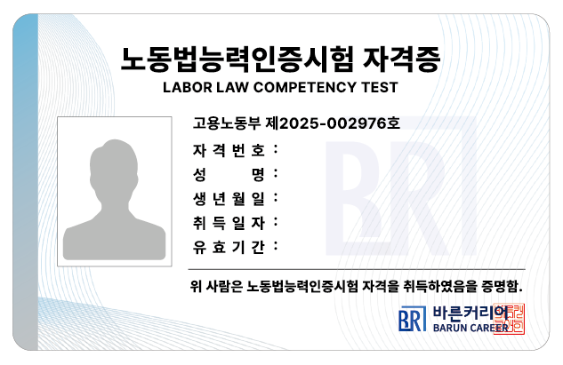 | 노동법능력인증시험 | 고용노동부 | 2025-002976 | 바른커리어 |